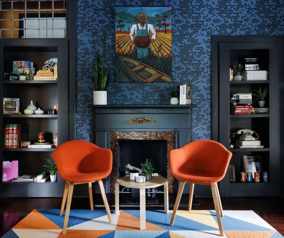 Deep, unexpected colors — such as navy, burgundy, or dark brown — can add a luxurious, dramatic layer to a mantel design.