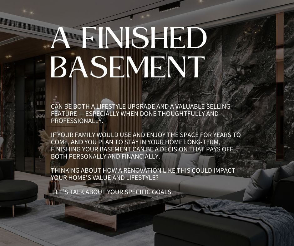 A finished basement can be both a lifestyle upgrade and a valuable selling feature — especially when done thoughtfully and professionally. If your family would use and enjoy the space for years to come, and you plan to stay in your home long-term, finishing your basement can be a decision that pays off both personally and financially.