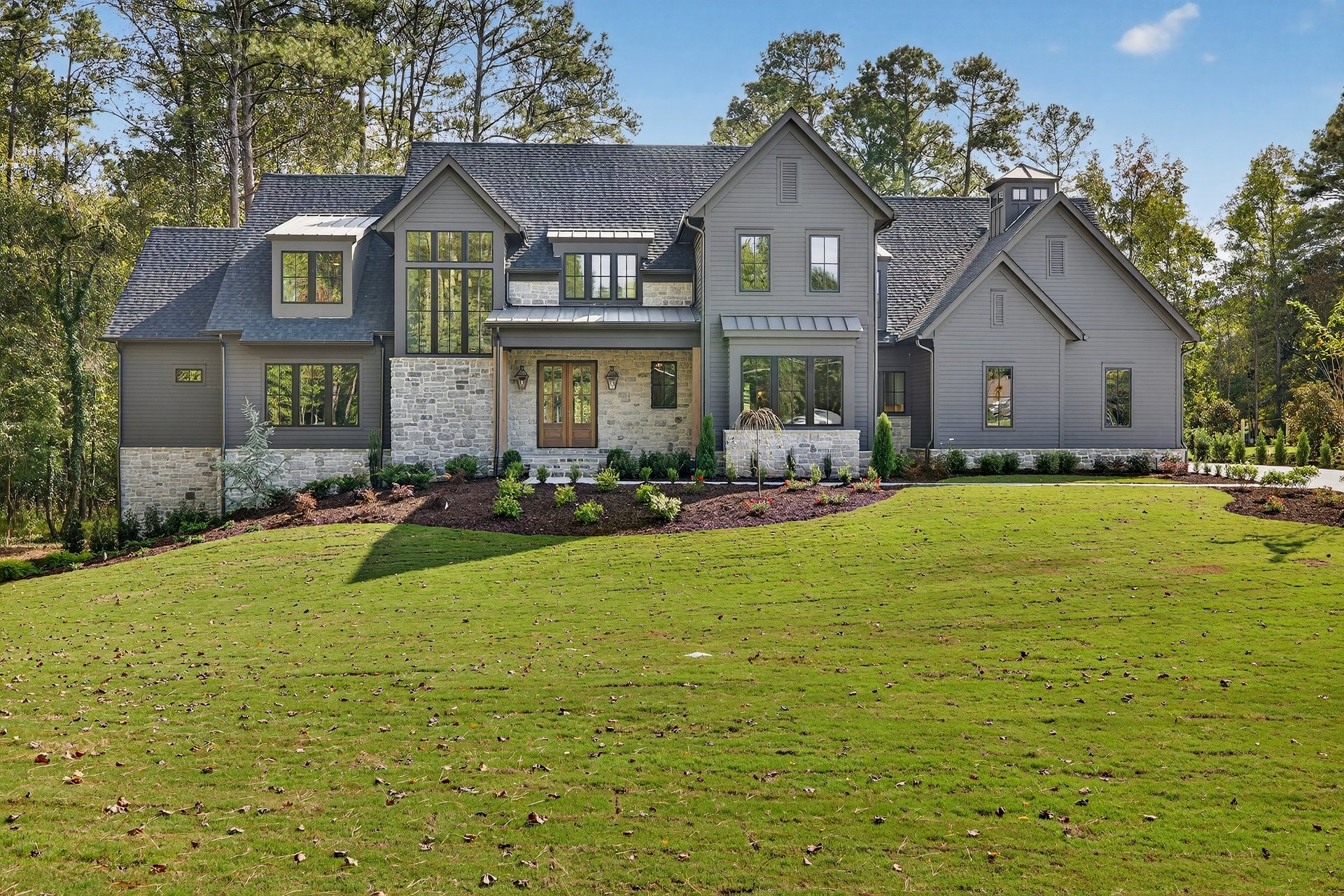 This private luxury estate was completed in one of the premier locations on the southern tip of Milton. Designed as a stately transitional home, the property featured a bright and open floorplan with a chef’s kitchen equipped with Thermador appliances, custom cabinetry, and quartzite countertops. The kitchen flowed seamlessly into a generous living space that led to a covered patio with an outdoor fireplace and a serene backyard oasis.