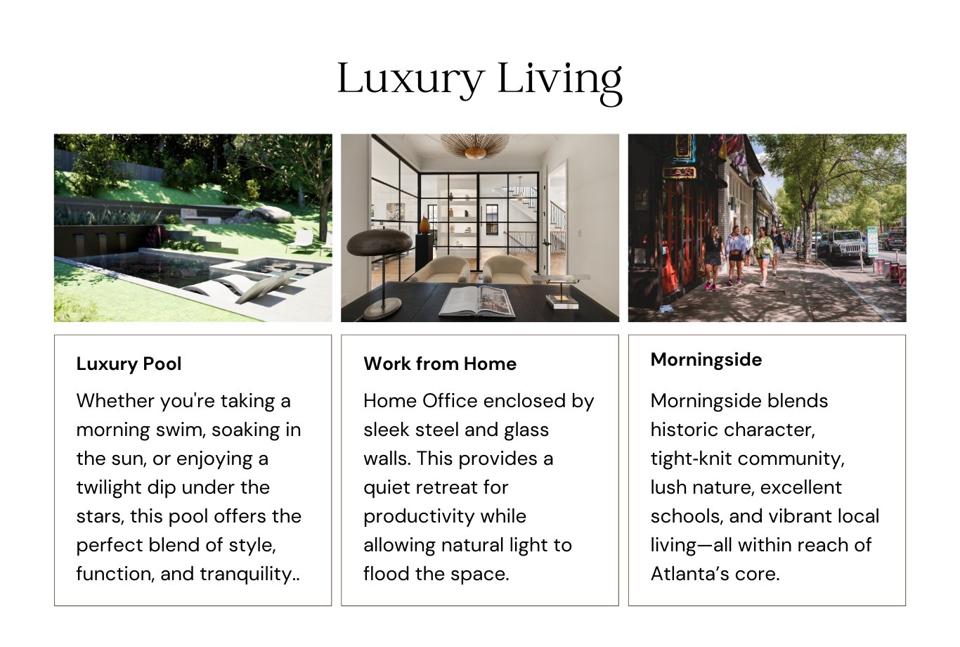 Modern Luxury Meets Thoughtful Design in the Heart of Morningside. Located on a quiet street and yet close to shopping and dining, this newly constructed residence by Waterford Homes offers the perfect blend of design-driven living and walkable intown convenience.
